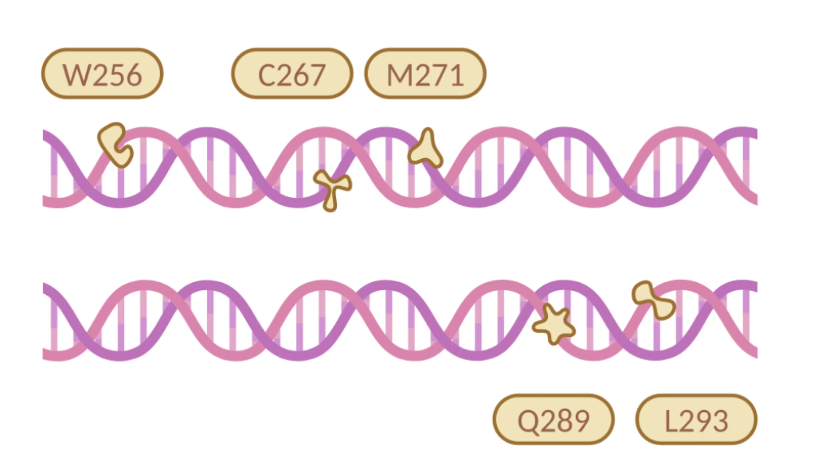 In the selection of mutation sites, previous studies have analyzed the substrate binding interactions within the SRPBCC domain of the NdmA enzyme for both caffeine and theobromine, identifying key residues (Q289 and L293) as critical for substrate specificity1. Homology modeling of NdmA and NdmB also revealed non-conserved residues within the active site pocket (W256, C267, and M271), which could likely contribute to substrate binding orientation and specificity2. Based on this prediction, we performed combinatorial mutations at two sets of residues and employed the biosensor plasmid to screen for clones based on their viability.
