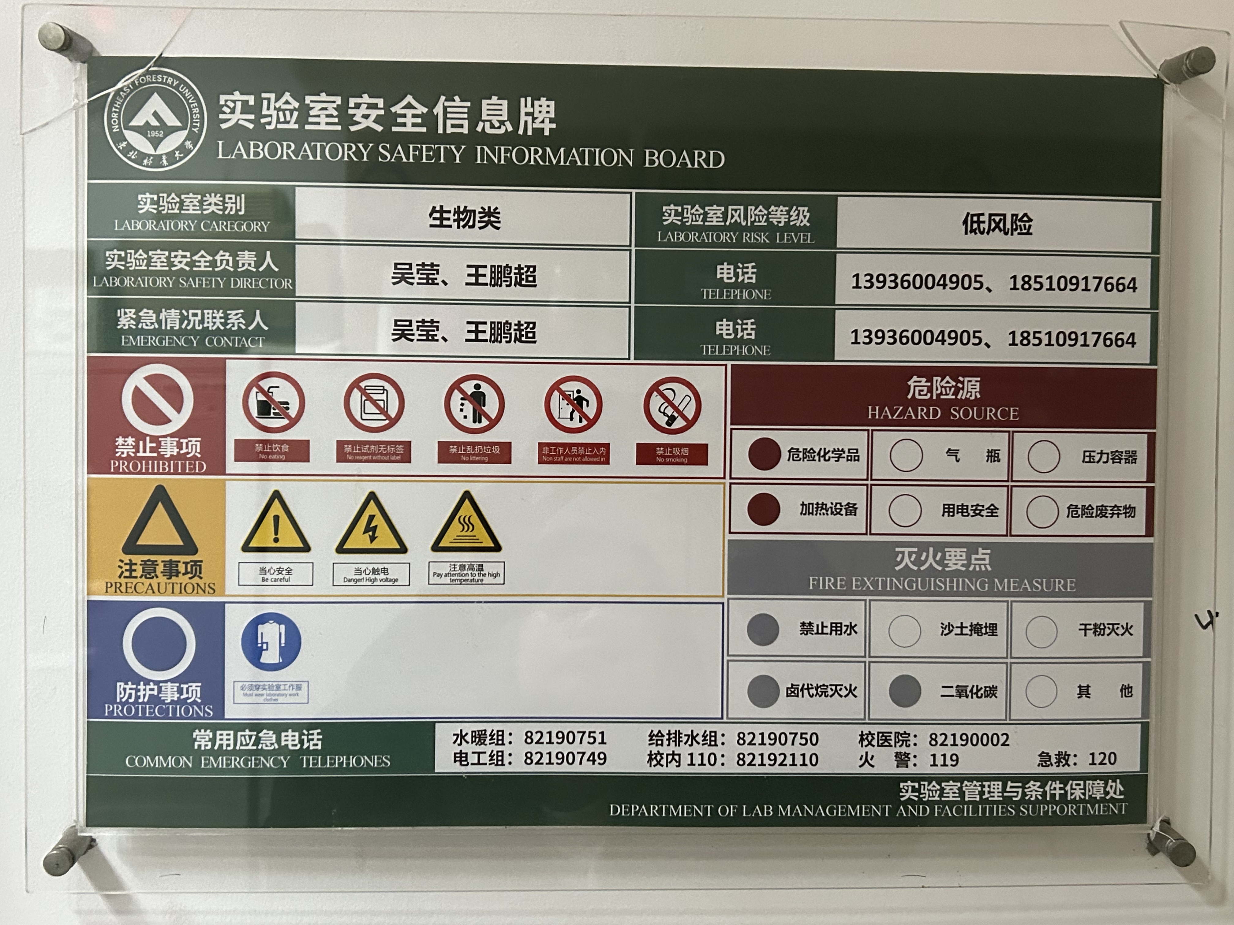 Safety is one of the most noteworthy issues in experiments. Having a good experimental environment is a prerequisite for achieving ideal experimental results. Therefore, 2024 NEFU_China implements several laboratory criteria to ensure experimental safety and has always been practicing.