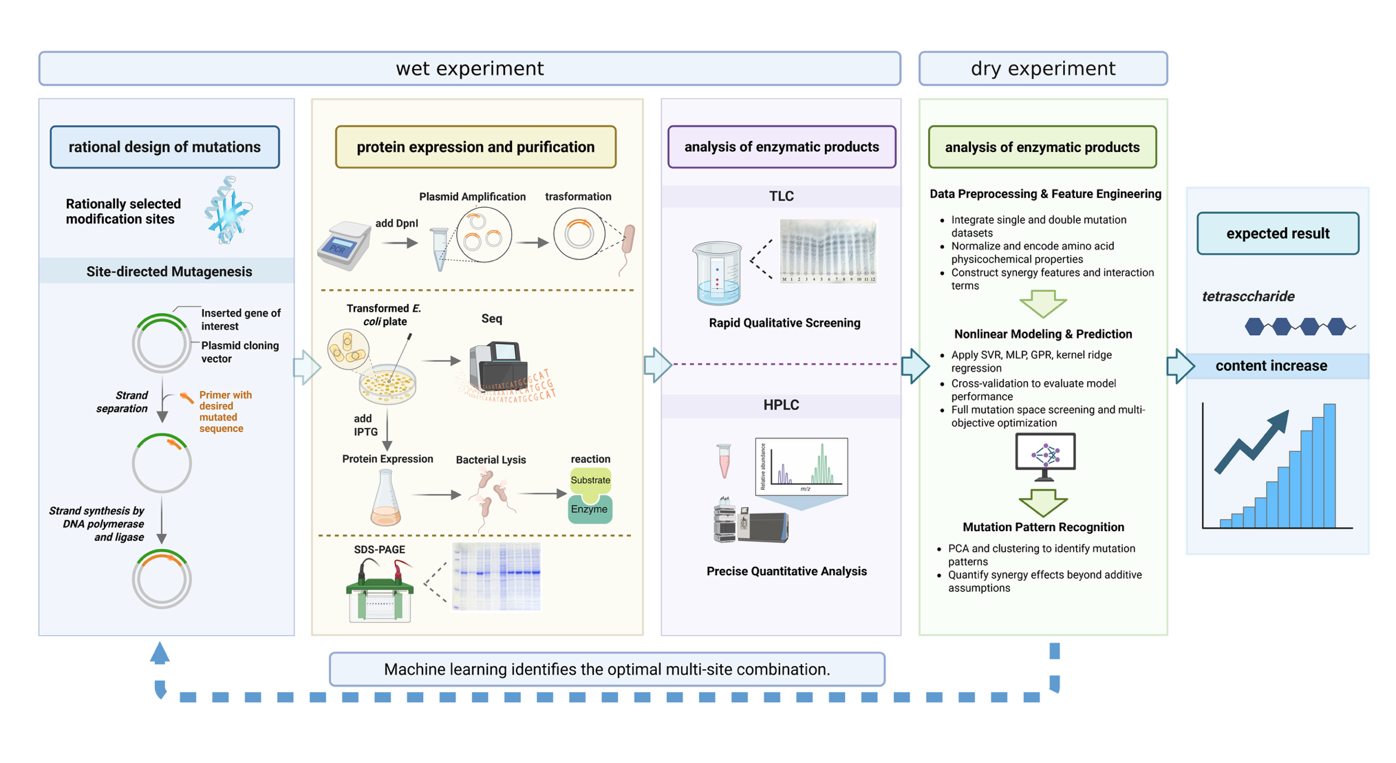 Prediction and Optimization: Use the trained models to predict the tetrasaccharide yield for all possible double-site combinations (318 in total) and screen the top 20 optimal candidate combinations through a comprehensive scoring system.