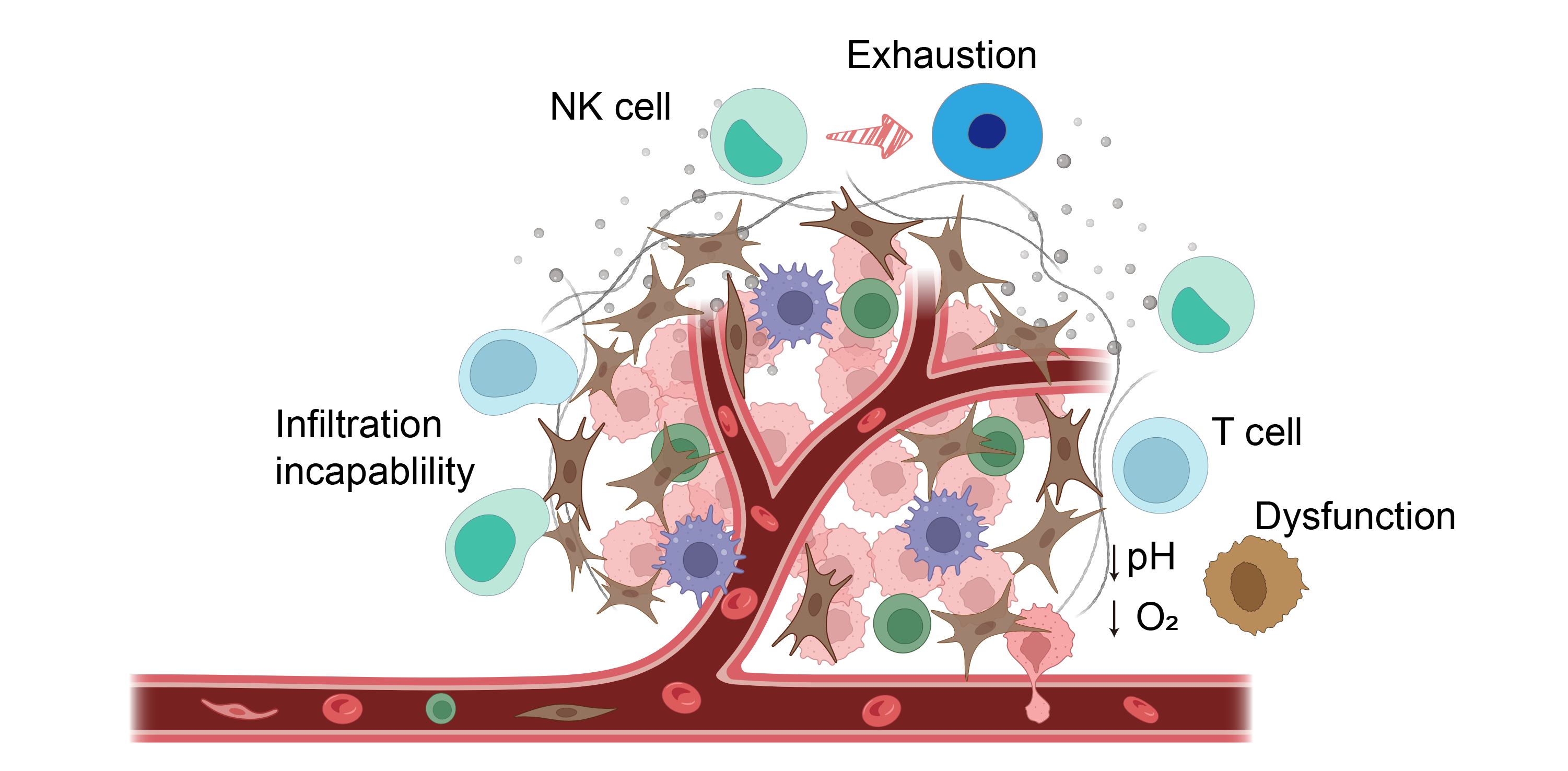 Adoptive cell therapy (ACT) has revolutionized clinical treatment strategies; however, it still faces considerable challenges in the context of solid tumors. These limitations are largely attributed to the immunosuppressive tumor microenvironment (TME), characterized by acidity, physical barriers, and overexpression of inhibitory checkpoints, which collectively restrict infiltration and induce exhaustion and dysfunction of T cells and natural killer (NK) cells. Moreover, cytokines essential for immune activation, particularly interleukin-2 (IL-2), are scarce within the TME. Together, these factors culminate in effector cell exhaustion and impaired activation.
